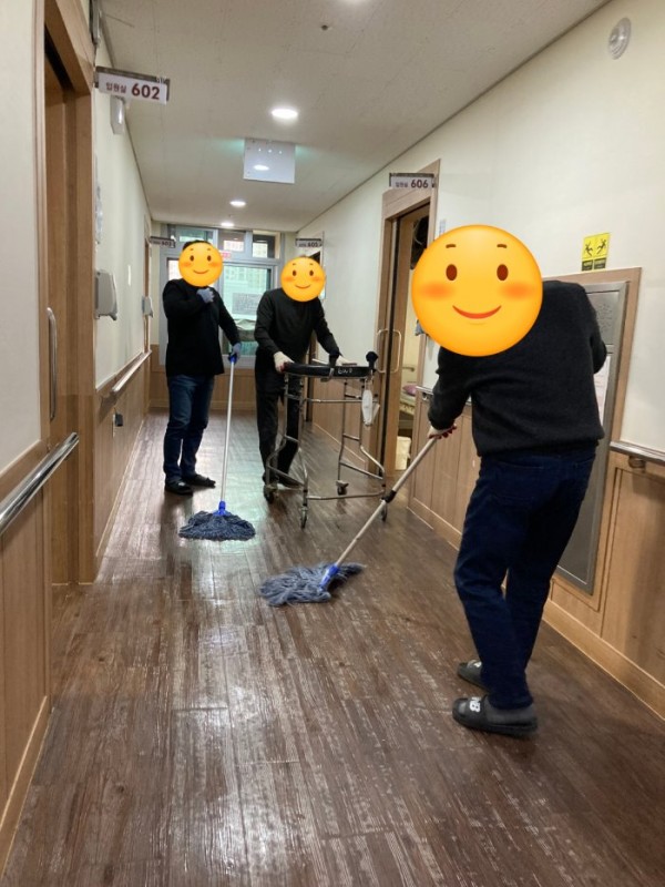 광주 광역시 코로나 19 고위험 시설 확진자 증가로 매일 긴장하며 방역수칙 예방활동에 전념하고 있는 강남요양병원입니다. 다사다난했던 2021년을 보내고 2022년 설 명절을 맞이하여 저희 병원 환자를 위한 미용서비스 와 전직원은 쾌적한 환경을 위해 전병실 대청소를 1주일동안 진행하여 오늘 마무리 하였답니다. 그리고 병원에서 설을 맞이하는 환우분들을 위해 오후 간식으로 바나나, 두유, 단밭빵을 준비해 드렸답니다. 강남요양병원 환우, 보호자 및 임직원 여러분 새해 복 많이 받으시고 늘 행복하세요. ^^